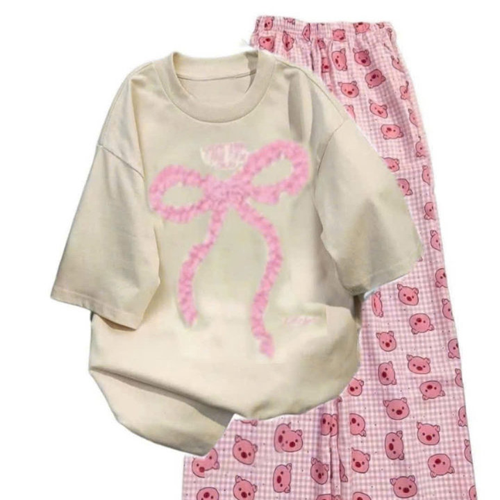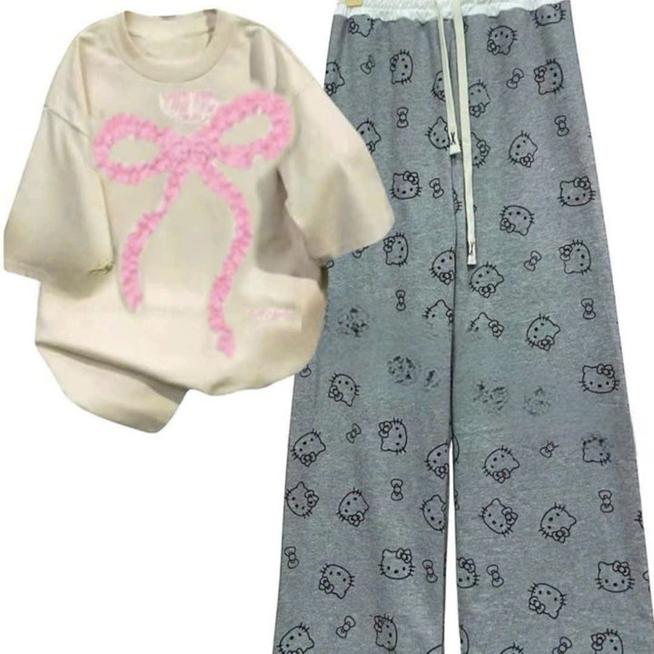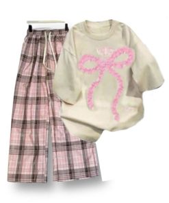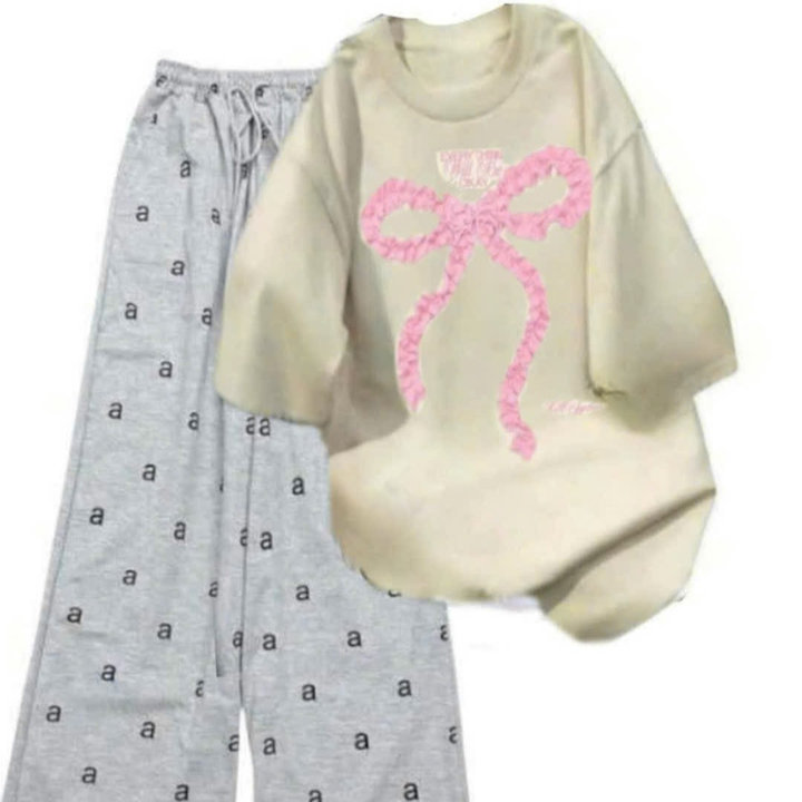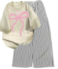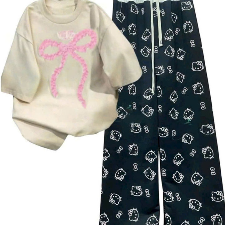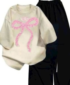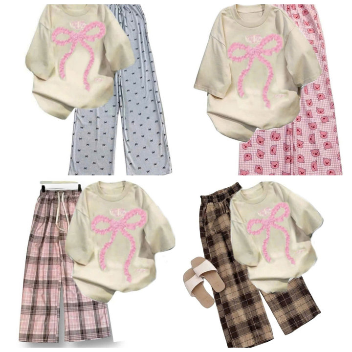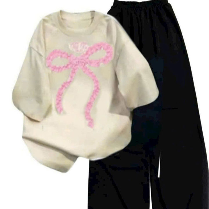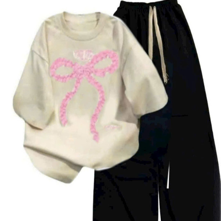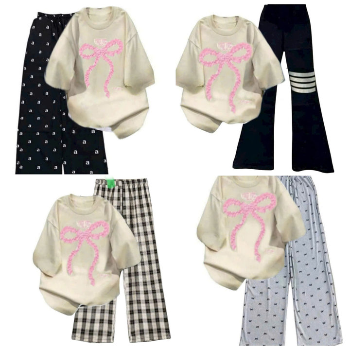 – Tên Sản phẩm: Tổng hợp Các Sét Bộ Quần ống rộng + Mix Áo Phông Form Rộng Unisex – Nơ Dúm từ chất liệu cotton và da cá siêu đẹp