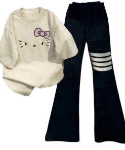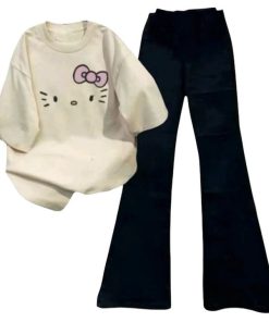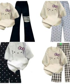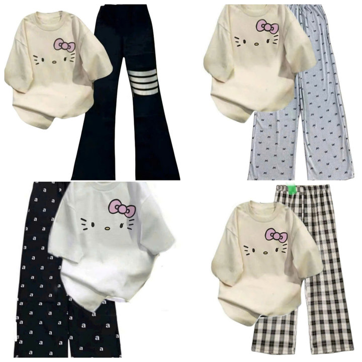 – Tên Sản phẩm: Tổng Hợp Các Sét Bộ Quần Suông Cạp Cao + Mix Áo Phông Form Rộng Unisex – Hình Mèo từ chất liệu cotton và da cá siêu đẹp