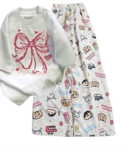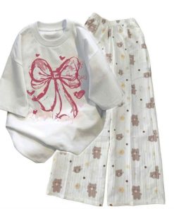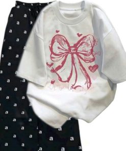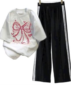 – Tên Sản phẩm: Tổng hợp quần ống rộng + mix áo phông nơ loang trắng