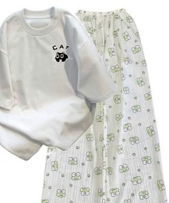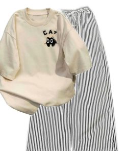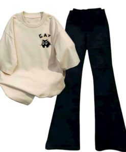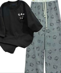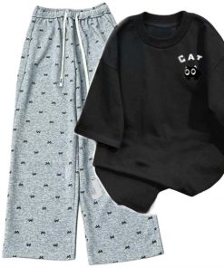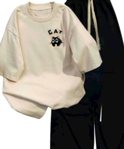 – Tên Sản phẩm: Tổng hợp sert bộ quần ống suông+ mix áo phông form rộng chất cotton – hình MÈO CAT