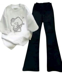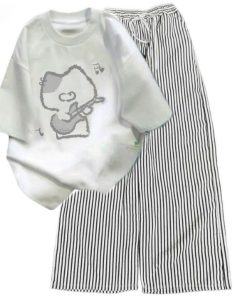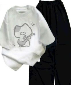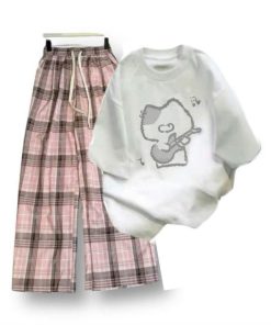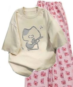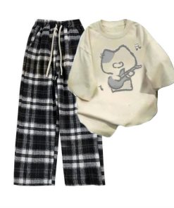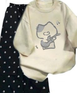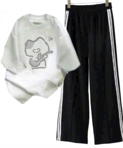 – Tên Sản phẩm: Tổng hợp sét bộ quần cạp chun+mix áo phông chất cotton- hình MÈO ĐÁNH ĐÀN
