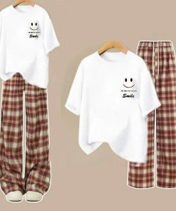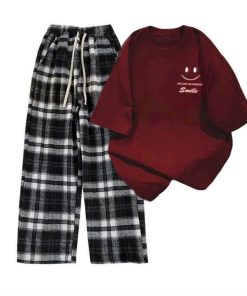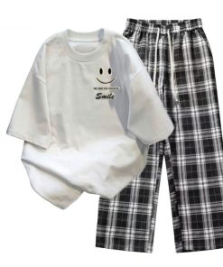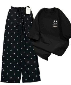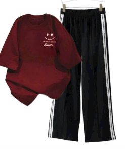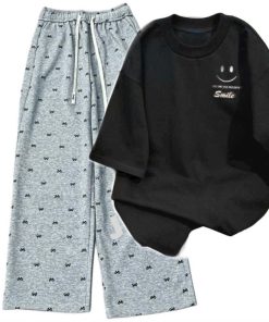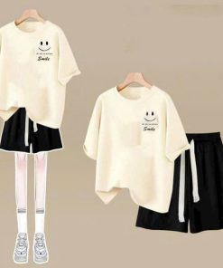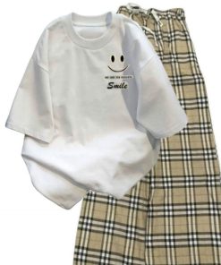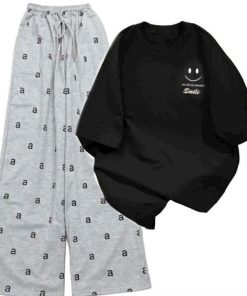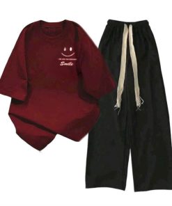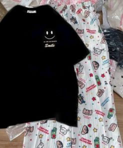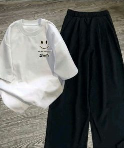 – Tên Sản phẩm: Tổng hợp set bộ quần chun+ áo phông form rộng tay lỡ-in hình mặt cười SMILE 4 màu