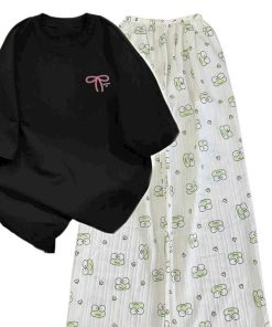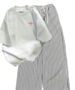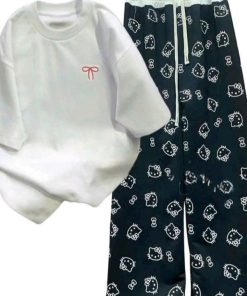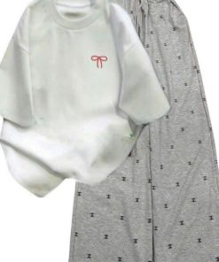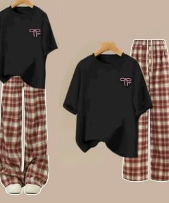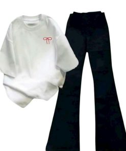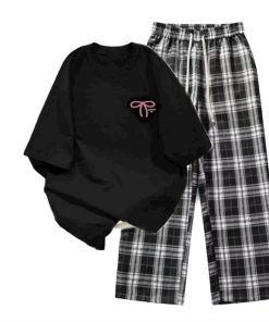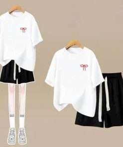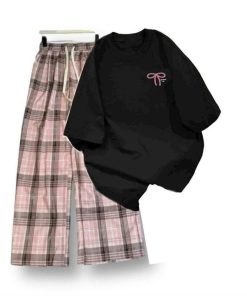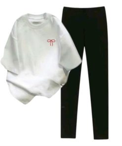 – Tên Sản phẩm: Tổng hợp set bộ quần chun +mix áo phông mẫu mới in nơ ngực-Chất cotton mềm
