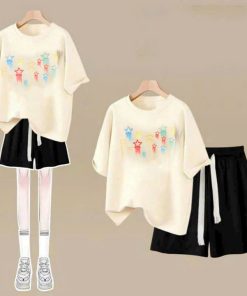 – Tên Sản phẩm: Tổng hợp set bộ quần đùi + mix áo phông form rộng tay lỡ chất cotton thoáng mát