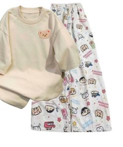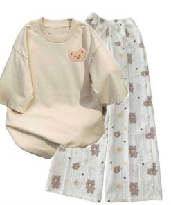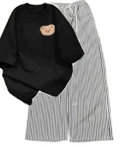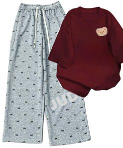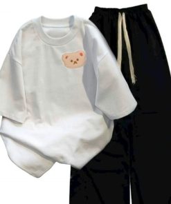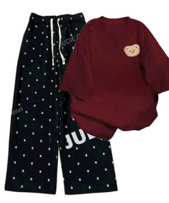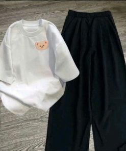 – Tên Sản phẩm: Tổng hợp set bộ quần ống rộng + áo phông form rộng tay lỡ chất cotton in gấu dâu nhiều màu sắc