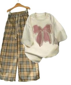– Tên Sản phẩm: Tông hợp set bộ quần ống rộng +mix áo phông KOLILA be