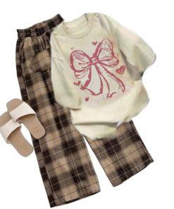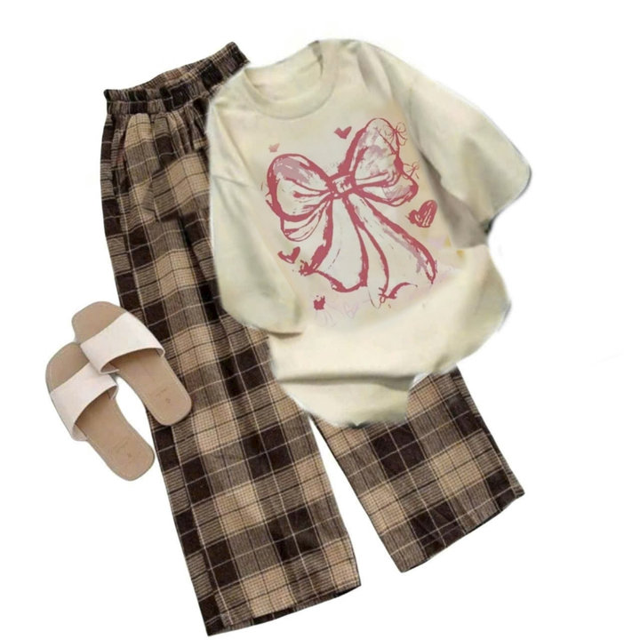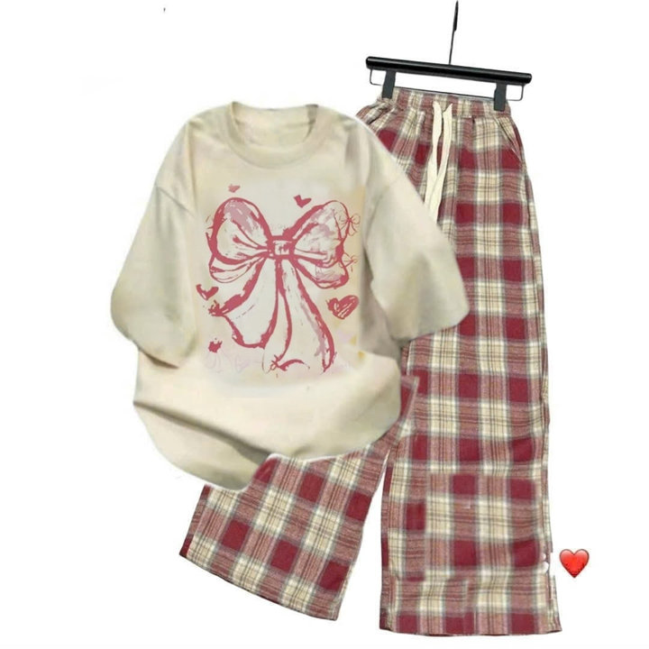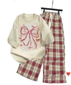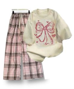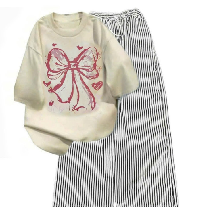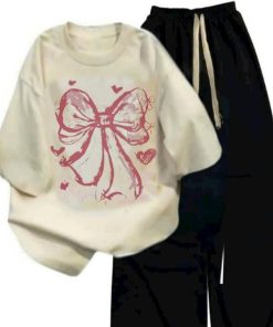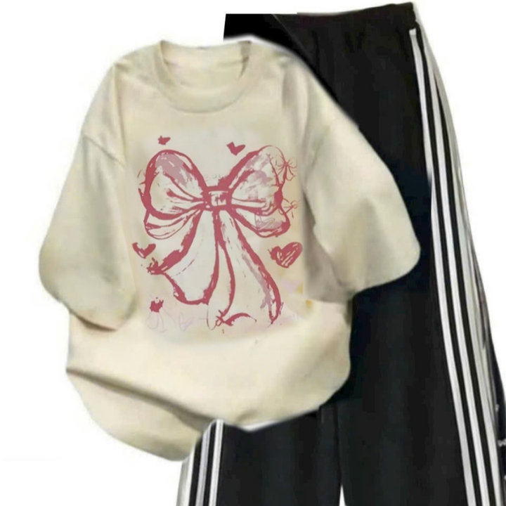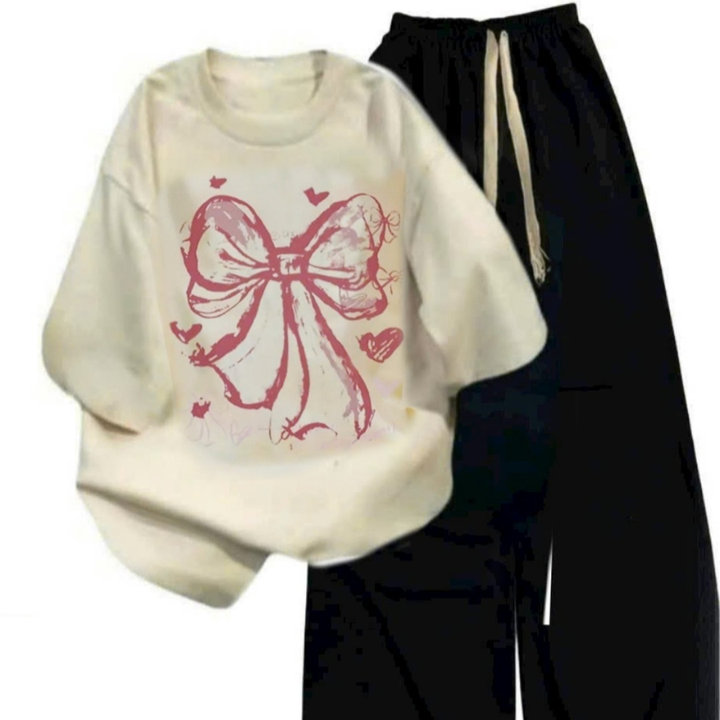 – Tên Sản phẩm: Tổng hợp set bộ quần ống xuông+mix áo phông mẫu mới-NƠ HỒNG LOANG