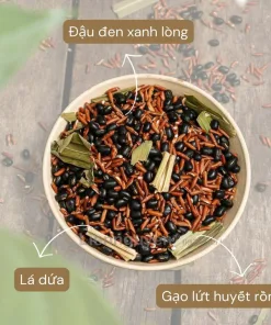 Thành phần: Gạo lứt huyết rồng, đậu đen xanh lòng, lá dứa