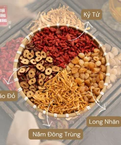 Thành phần: Nấm đông trùng hạ thảo, táo đỏ, long nhãn , kỷ tử