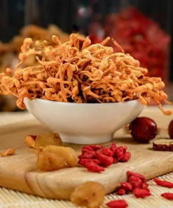 Nấm đông trùng hạ thảo: Cải thiện sức khỏe, giảm mệt mỏi và suy nhược, cải thiện chức năng não bộ, ức chế các tế bào ung thư, tăng cường sức đề kháng, trị mất ngủ, chống lão hóa, cải thiện bệnh về tim mạch, chống lại chứng viêm