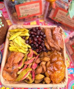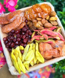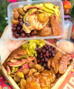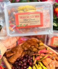 Hộp trái cây sấy dẻo mix chua 500g với đủ vị hấp dẫn: mãng cầu, me, cóc, ổi, xoài, tắc, chùm ruột… sấy dẻo mềm, thơm tự nhiên – chua thanh kích vị 😋