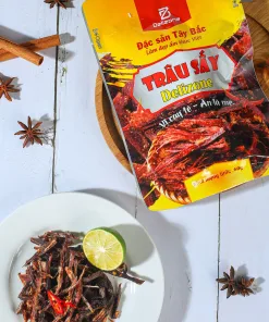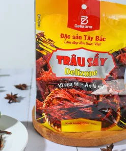 Thành phần: Thịt trâu, muối, ớt, đường, vừng trắng, dầu tiêu, hương vị thực phẩm, …