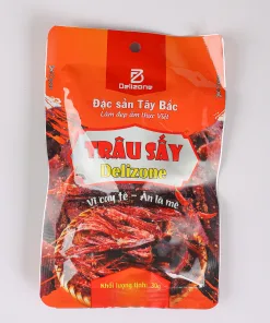 Thành phần: Thịt trâu, muối, ớt, đường, vừng trắng, dầu tiêu, hương vị thực phẩm, …
