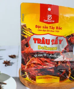Thành phần: Thịt trâu, muối, ớt, đường, vừng trắng, dầu tiêu, hương vị thực phẩm, …