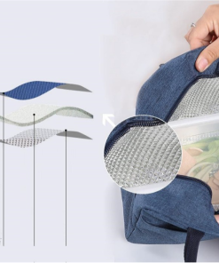 - Chất liệu: Bên ngoài là vải Canvas, bên trong có lợp tráng bạc cách nhiệt tốt