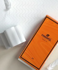 Giấy rút treo tường cheerful được làm 100% từ bột gỗ nguyên sinh cao cấp, không chất tẩy trắng, không kích ứng khi sử dụng.
