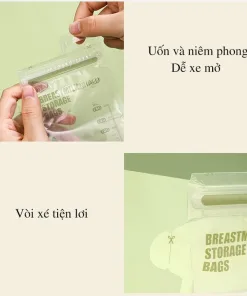 Thao tác đóng mở dễ dàng tiện lợi: Thiết kế khóa zip tiện lợi, bạn chỉ cần vuốt mạnh mép túi là miệng túi sẽ dính chặt lại. Còn khi muốn đổ sữa ra bình cũng chỉ cần tách phần mép là có thể sử dụng.