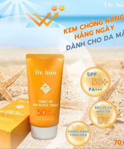 Kem chống nắng DR. HISO DAILY UV SUN BLOCK CREAM SPF 50 là dòng sản phẩm chống nắng vật lý dành cho da mặt đến từ Hàn Quốc, với khả năng chống nắng cực đỉnh (SPF 50/ PA++++). Kem có tác dụng phản xạ lại các tia UV, ngăn cản không cho tia UV xuyên đến da làm đen da, sạm da.