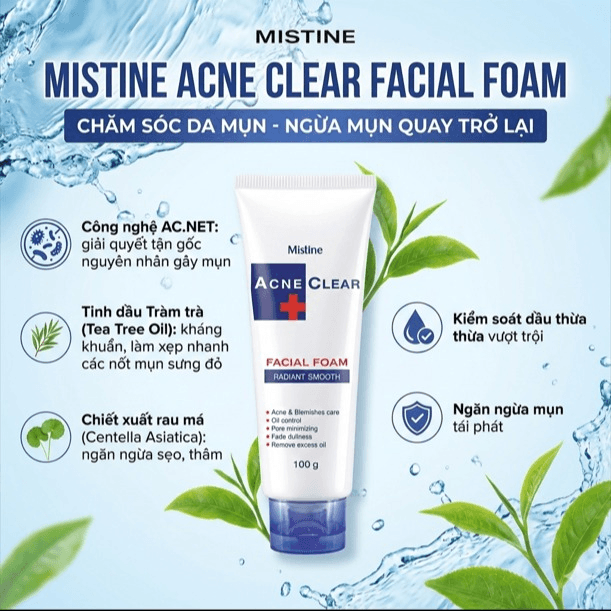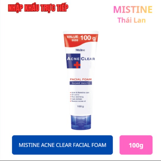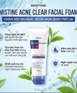Dòng Mistine Acne Clear Facial Foam là một trong những dòng trị mụn “quốc dân” siêu lành tính của Thái Lan. Điểm đáng giá nhất của em này là bảng thành phần chiết xuất từ thiên nhiên trị mụn cực tốt nhưng không làm khô da.