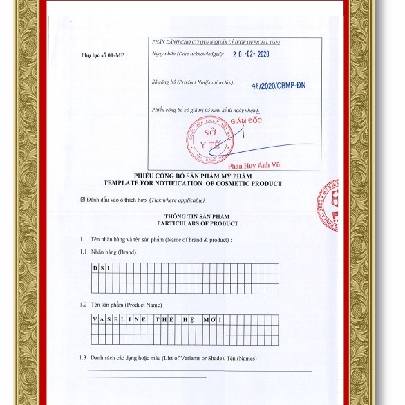 Tên sản phẩm : Vaseline thế hệ mới – DSL
