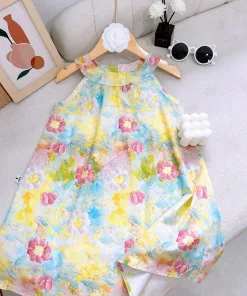 Tên sản phẩm: VÁY 2 DÂY CỔ YẾM DÁNG BABYDOLL HỌA TIẾT HOA CHO BÉ GÁI PT10 – BE YOURSELF