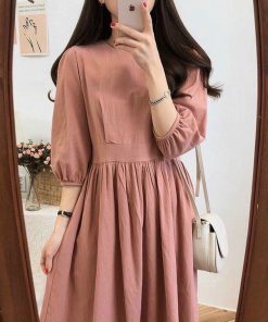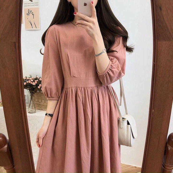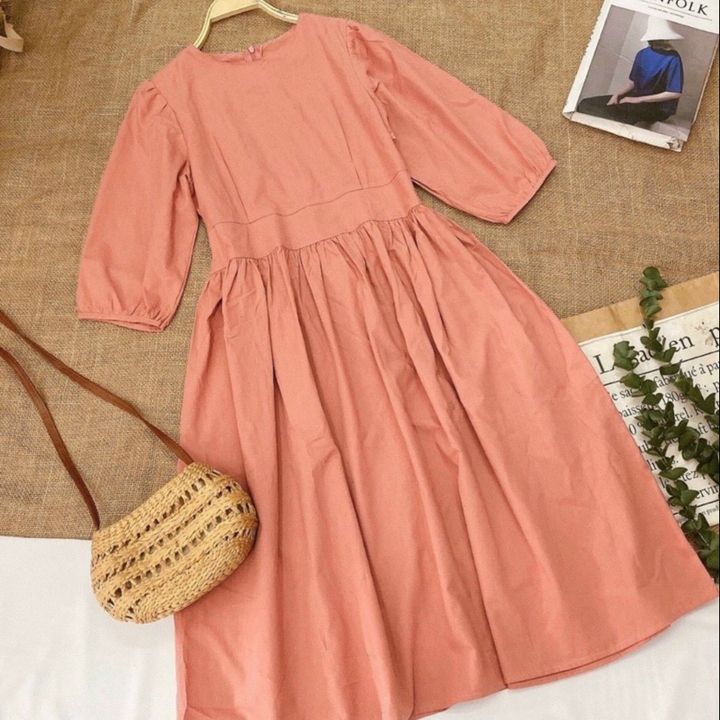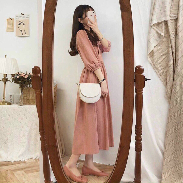 Tên sản phẩm: Váy babydol hồng ruốc tay lở bồng dáng dài nữ tính V91 – CLOUDY DRESS