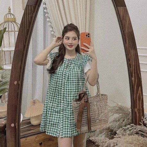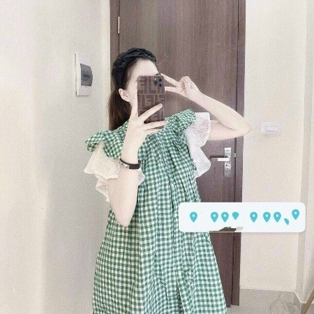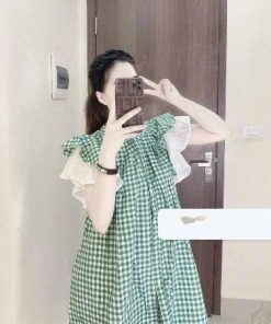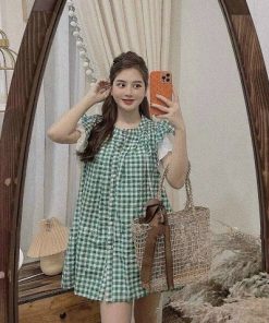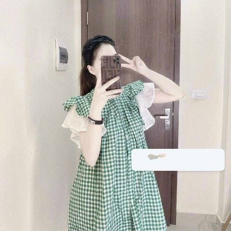 Tên sản phẩm: VÁY BABYDOLL CHẤT CARO XANH TAY BÈO CUTE V112 – CLOUDY DRESS