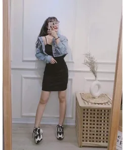 -Tên Sản phẩm: Váy body nữ 2 dây màu đen