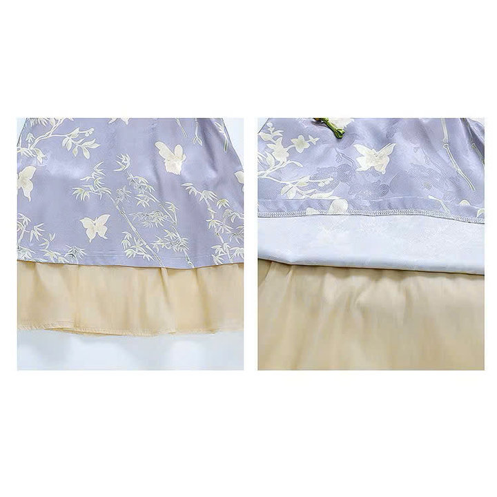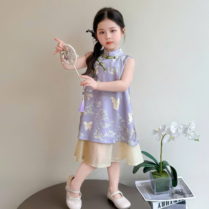 Váy Cách Tân Cổ Tàu Dáng Suông Họa Tiết Bướm Tím 1-8 Tuổi Dành Cho Bé Gái