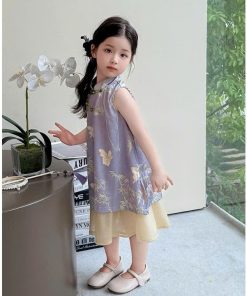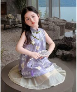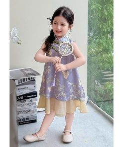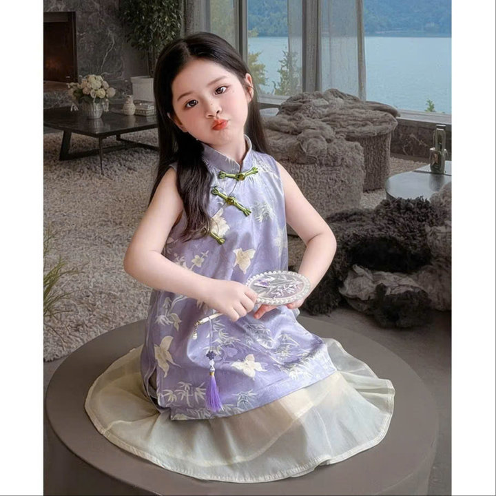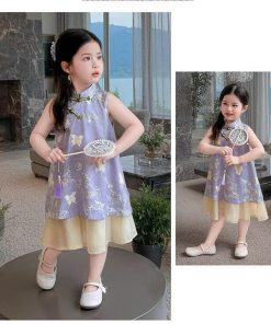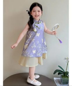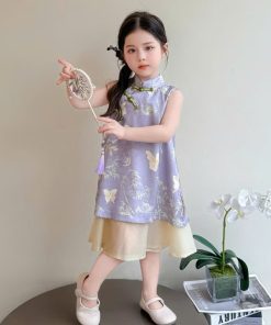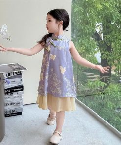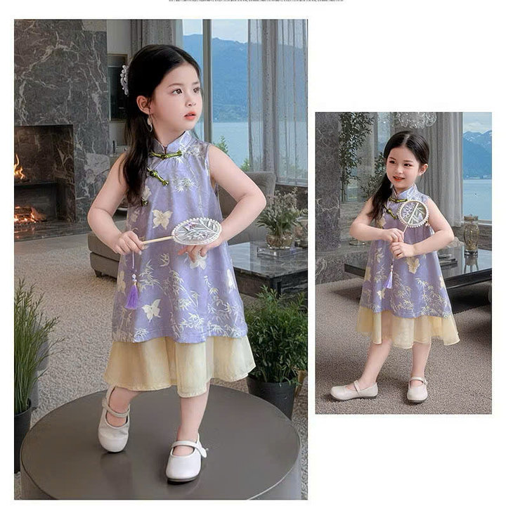 1. Tên sản phẩm : Váy Cách Tân Cổ Tàu Dáng Suông Họa Tiết Bướm Tím 1-8 Tuổi Dành Cho Bé Gái