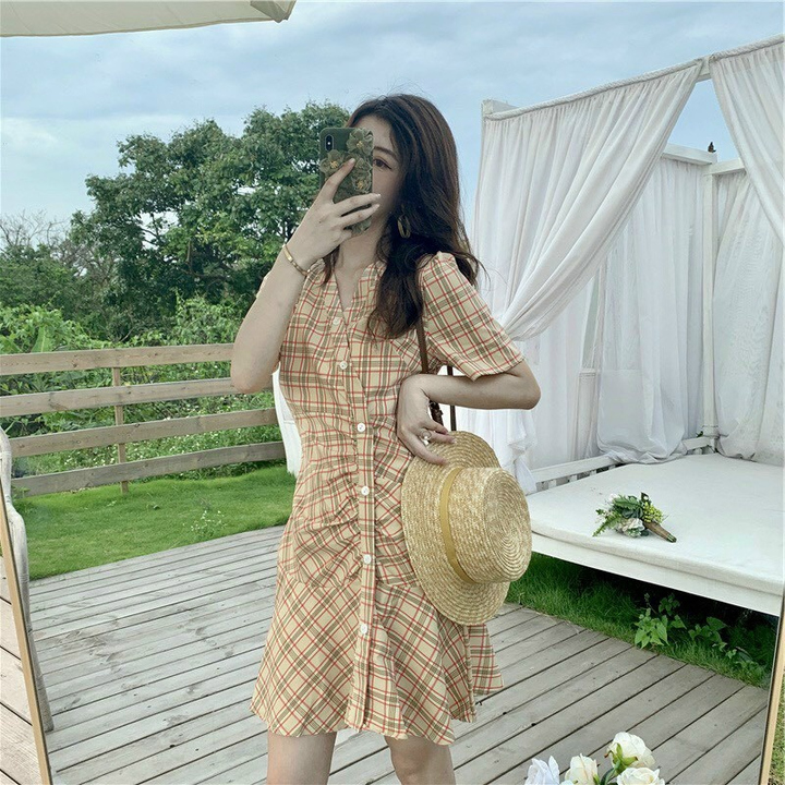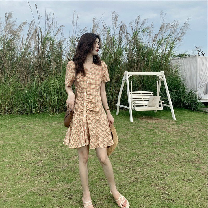 Tên sản phẩm: Váy caro dáng chữ A ôm eo thanh lịch V82 – CLOUDY DRESS