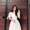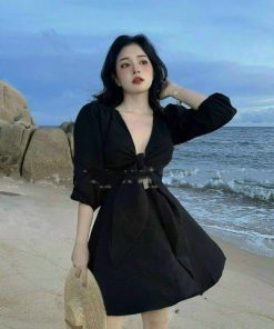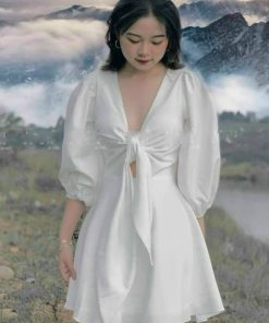 Tên sản phẩm:VÁY CỔ CHỮ V TAY LỠ DÁNG XÒE CÓ CÚP NGỰC SANG CHẢNH V126 – CLOUDY DRESS