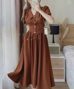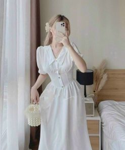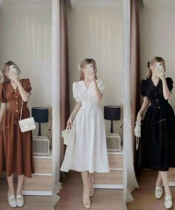 Tên sản phẩm: Váy dài ôm eo đính kèm nút cổ chữ V thanh lịch V88 – CLOUDY DRESS