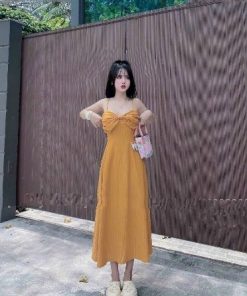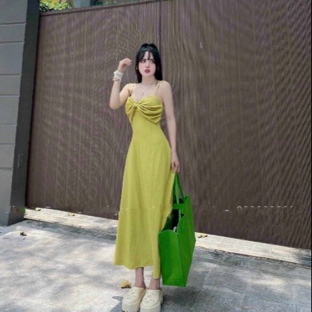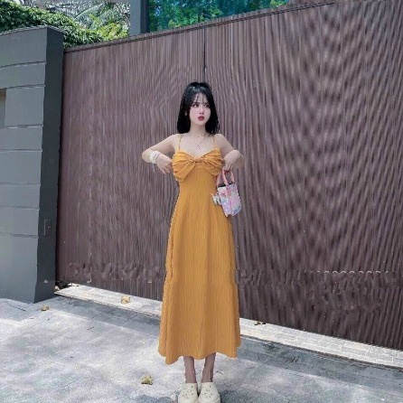 Tên sản phẩm: VÁY DÁNG DÀI HAI DÂY SANG CHẢNH V498 – HAKA MÂY