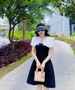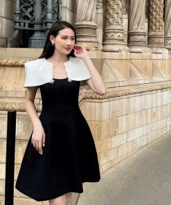 Tên sản phẩm: VÁY DỰ TIÊC DÁNG XÒE VAI KIỂU SANG CHẢNH V363 – HAKA MÂY