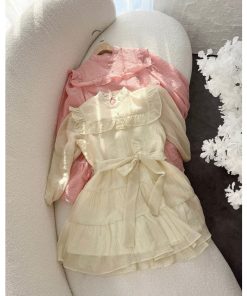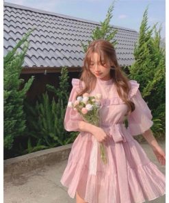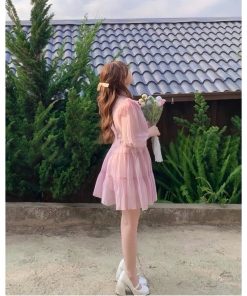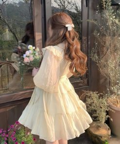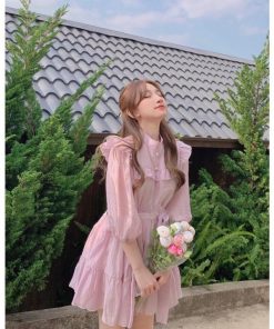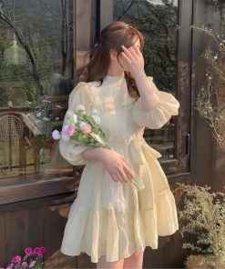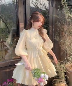 Váy đũi gân cúc ngọc bèo cổ -HTChất đũi gân