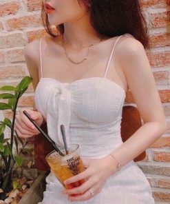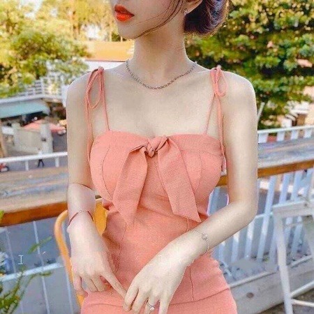 Tên sản phẩm: VÁY HAI DÂY ĐÍNH NƠ TIỂU THƯ SANG CHẢNH V216 – CLOUDY DRESS