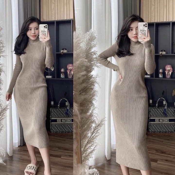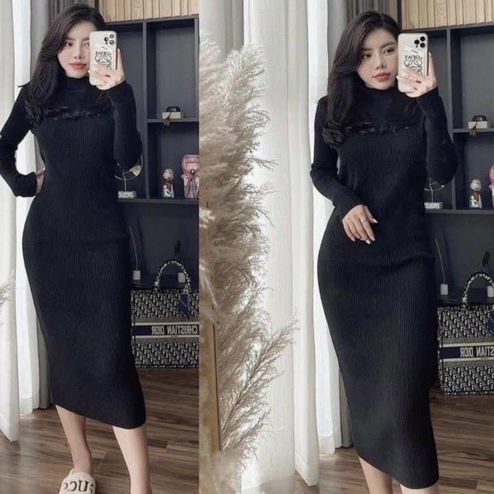 VÁY LEN ÔM BODY CỔ THẤP DÁNG DÀI PHONG CÁCH NHẸ NHÀNG, QUYẾN RŨ DÀNH CHO BẠN NỮ