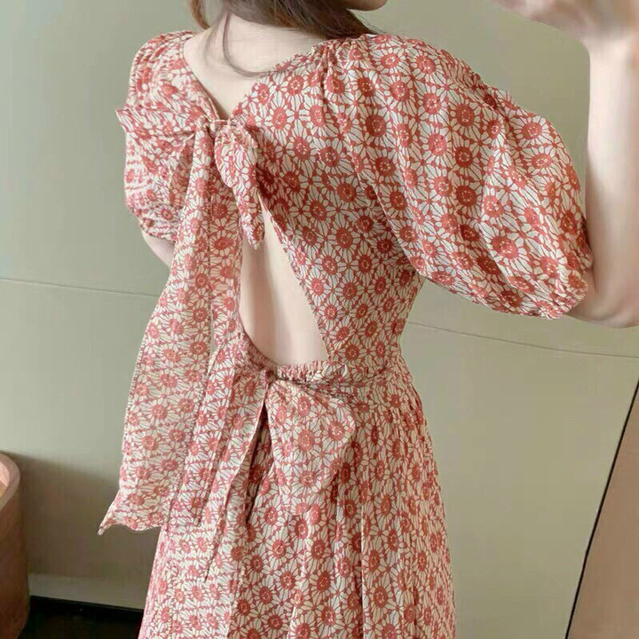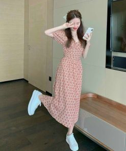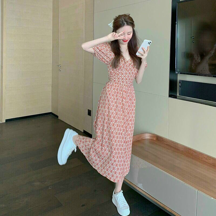 Tên sản phẩm: VÁY TIỂU THƯ CỔ CHỮ V CỘT NƠ DÁNG DÀI THANH LỊCH V121 –