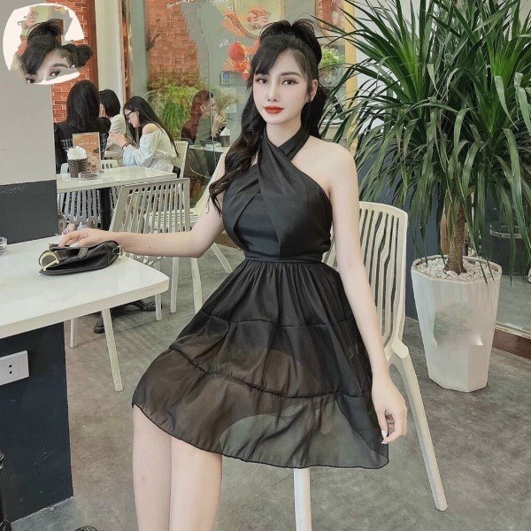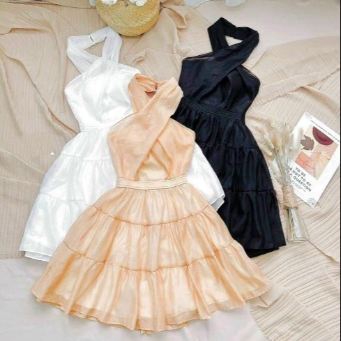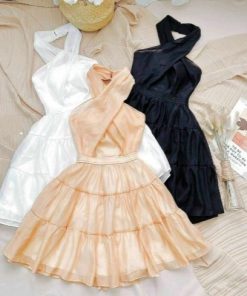 Tên sản phẩm: VÁY XÒE CỔ CHÉO VOAN 2 LỚP SANG CHẢNH V526 – HAKA MÂY