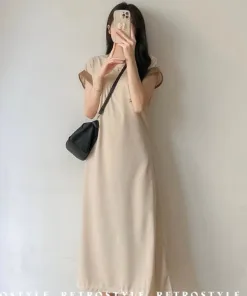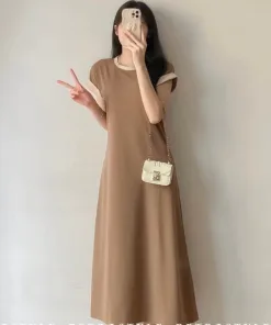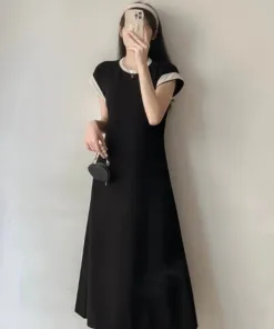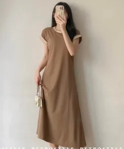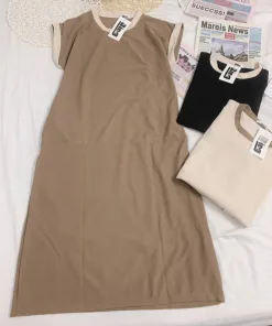 • – Tên Sản phẩm: váy xuông dáng dài cổ viền thun tăm nữ