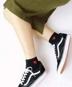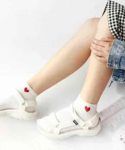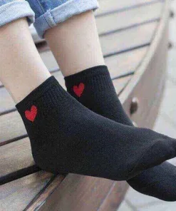 - Tất ngắn cổ với họa tiết trái tim màu đỏ ở cổ.
