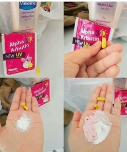 HDSD: lấy 1 lượng nhỏ lotion (kem/ sữa dưỡng thể) dùng trong 2-3 ngày ra 1 lọ nhỏ sạch sẽ, rồi tách 1 viên alpha arbutin ra và trộn đều. Sau đó thoa sáng tối như lotion bình thường