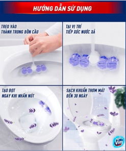 5. Viên vệ sinh bồn cầu VIM với thiết kế tiện lợi, dễ dàng tháo lắp khi treo vào thành bồn cầu, giúp giữ cho toilet luôn sạch khuẩn và thơm mát tới 1500 lần xả nước