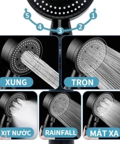 Vòi Hoa Sen – Vòi Sen Tăng Áp Cao Cấp Không Gỉ 5 Chế Độ Nước