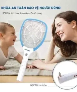 + Nút điều khiển gồm 2 nút: nút khởi động/ Tắt và nút bấm điện để vợt muỗi.