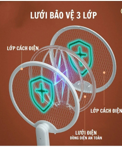 - Vợt muỗi có tích hợp cầu chì bảo vệ trong các trường hợp bị quá tải, quá dòng, đoản mạch .. nhằm phát hiện chính xác điện áp sạc bảo vệ an toàn cho quá trình sạc