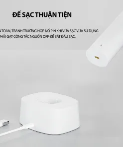 Khi sạc cần gạt công tắc nguồn về vị trí OFF . Sau đó đặt vợt vào đế sạc , đèn sạc sẽ báo nhấp nháy .Khi bốn đèn chỉ báo sạc trên sản phẩm đều sáng điều đó có nghĩa là pin đã đầy thời gian sạc đầy pin khoảng 3 – 4h.