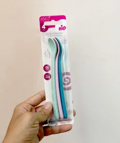 Thìa ăn dặm cho bé Nip được thiết kế với tay cầm dài được làm cong khiến việc xúc thức ăn từ các lọ thủy tinh cổ sâu trở nên dễ dàng. Cán thìa được mở rộng ở phần đuôi tạo cảm giác thoải mái và chắc chắn hơn khi cầm. Đây là dụng cụ không thể thiếu trong danh sách đồ ăn dặm cho bé