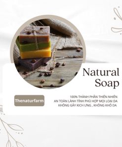 Xà bông handmade thiên nhiên tại naturfarm giúp tắm, rửa làm sạch da nhanh chóng, dưỡng da khỏe tự nhiên, đặc biệt có rất nhiều các công dụng chăm sóc da từ thảo dược (Mướp đắng, Trà xanh, Chùm ngây, Quế, Cà phê, Tía tô, Sả chanh, Bạc hà,Hương Nhu , Nghệ… ) hỗ trợ sạch khuẩn, làm giảm mụn lưng, sáng da, mờ thâm, dưỡng ẩm.